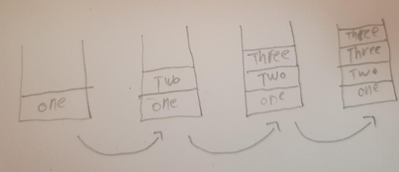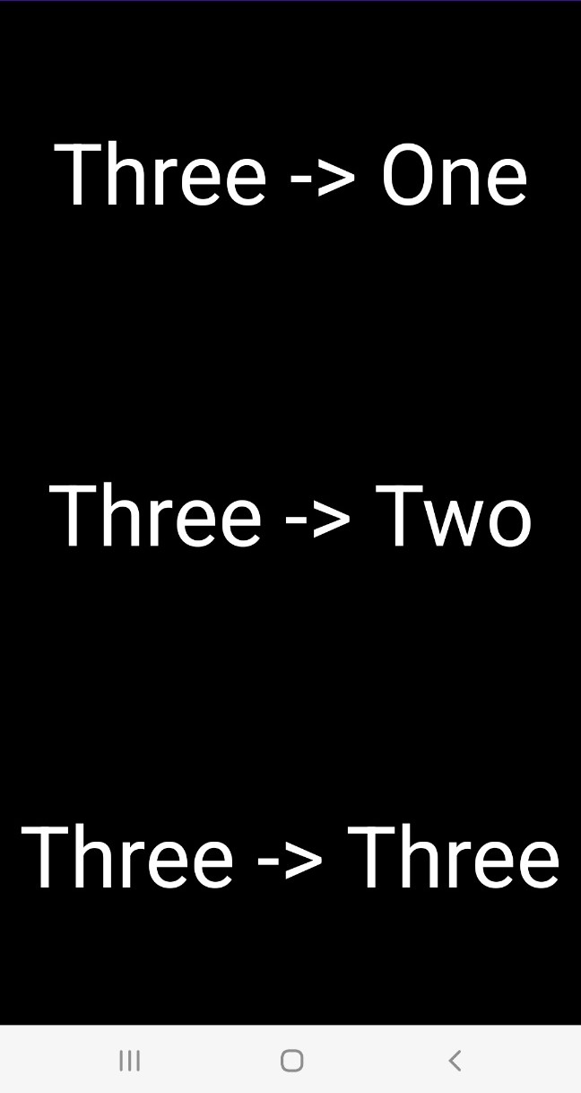 순서대로 One -> Two -> Three로 이동 한후 Three에서 ->Three로 이동하는 과정을 거친후 뒤로가기를 하여 후입선출을 확인 해보면